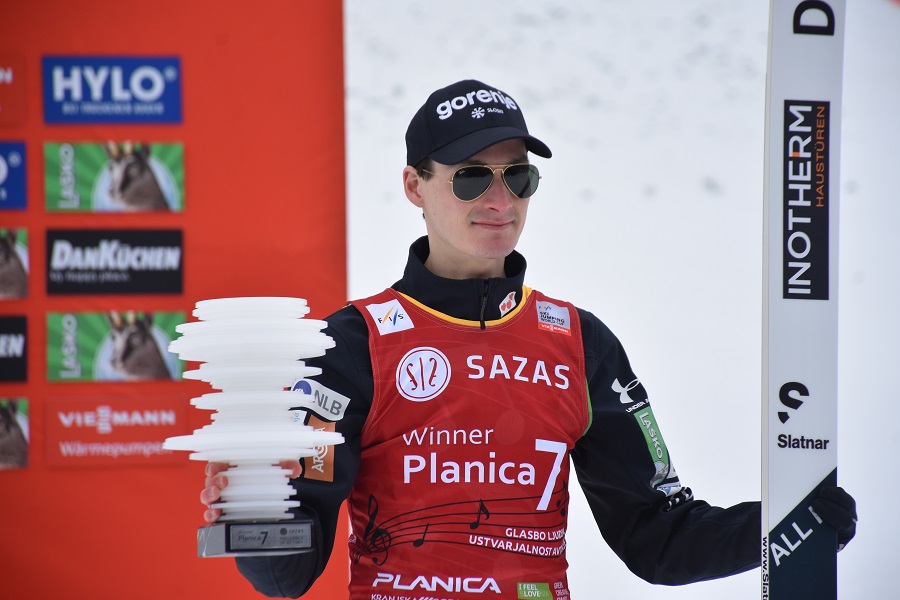 Inovativen pokal Planica 7 je prejel Domen Prevc [foto: Klemen Zibelnik / smucka]
